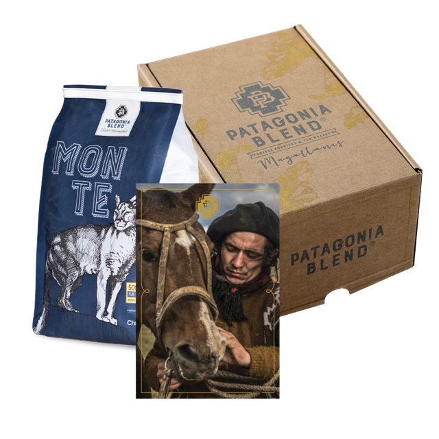 Nuestro propósito es atesorar el patrimonio cultural, natural y humano de la región, a través del diseño y el arte plasmado en nuestra marca, desde nuestros envases reciclables, hasta nuestro ciclo productivo circular, generando un impacto real y tangible en la trascendencia de nuestra identidad. Es por esto, que queremos compartir con ustedes este tesoro, nuestro tesoro, para que puedan llevar toda la magia de la Patagonia a sus hogares, sin importar lo lejos que estén (en otras palabras, un regalo cruo-taquilla-increíble). PB Box 01 - Uno de nuestros Estate Coffee (Monte) - Postal con fotografía de Eduardo Hernández