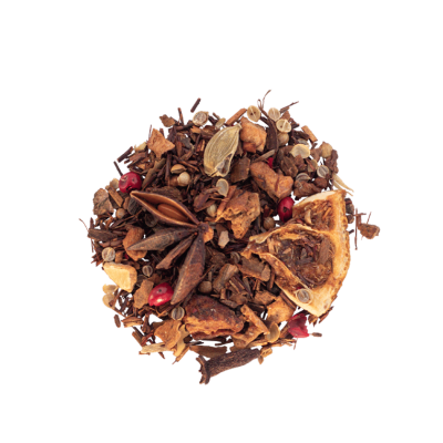 La canela, cardamomo, pimienta y clavo de olor rememoran la calidez de las festividades navideñas, que junto con una base de rooibos, naranja y manzana la convierten en una dulce y especiada infusión libre de cafeína, de cuerpo ligero y retrogusto medio-largo.